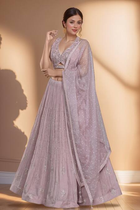 Buy_Samyukta Singhania_Pink Silk, Organza, Chiffon Sequins, Cut Work Periwinkle Embroidered Lehenga Set_Online_at_Aza_Fashions