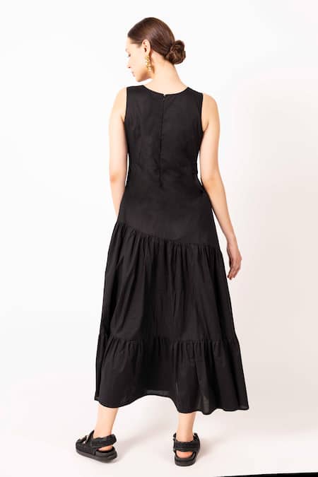 Black Cotton Satin Solid Round Cut-out Dress