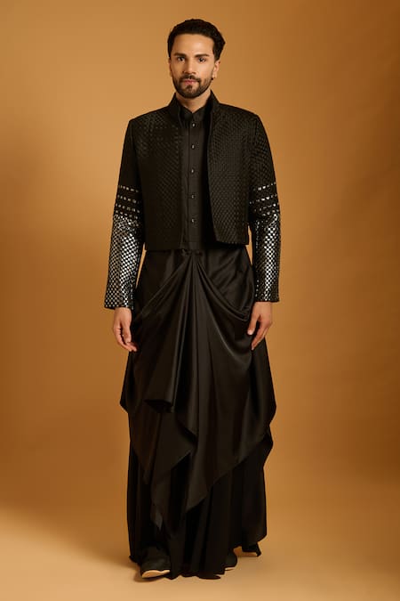 Black Embroidered Matka Silk Jacket