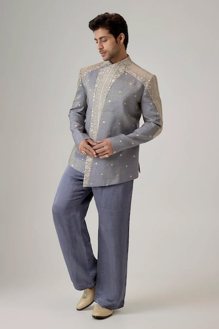 Pintuck Embroidered Asymmetric Bandhgala With Pant