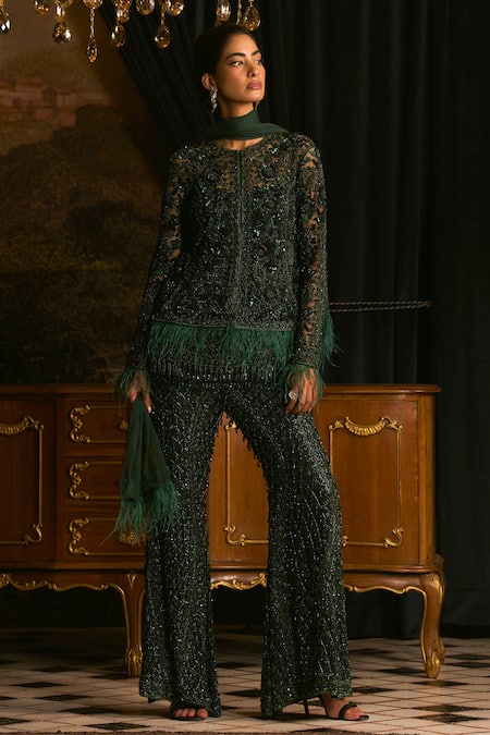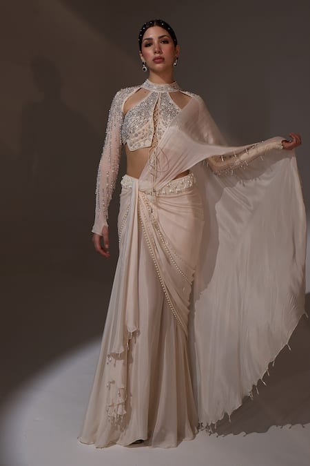 Embroidered Bodysuit & Pre-Draped Skirt Set