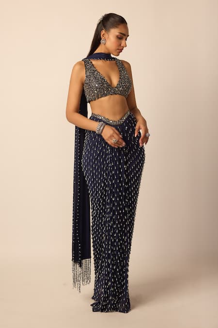 Single Drop Embellished Pre-Draped Saree With Blouse