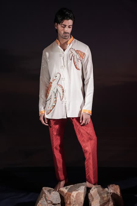 Crinkled Stripe Hand Block Printed Shirt & Pant