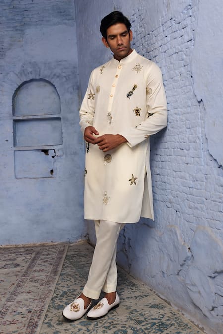 Ivory Marine Life Embroidered Kurta Set