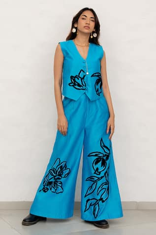 Cobalt Blue Chanderi Silk Pant Set