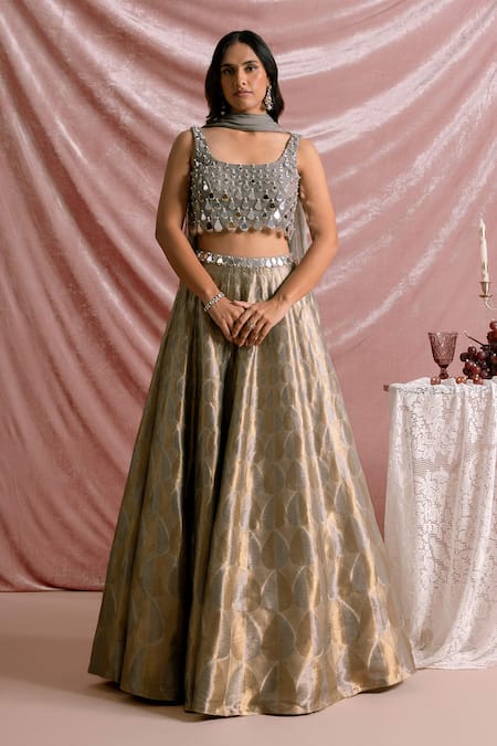 Sequin Floral Embroidered Lehenga Set