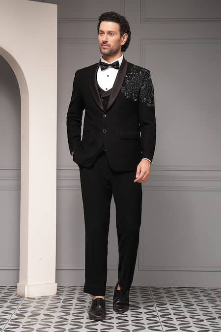 Black Floral Embroidered Tuxedo Set