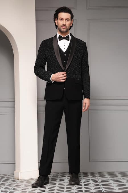 Celestial Noir Embellished Tuxedo Premium Suiting Fabric Tuxedo & Waistcoat Set