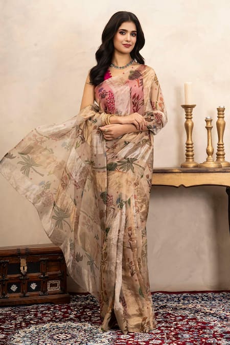 Adira Floral Print Organza Saree With Blouse