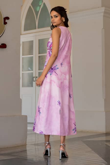 Lilac muslin blazer dress featuring a V-neckline and sleeveless design