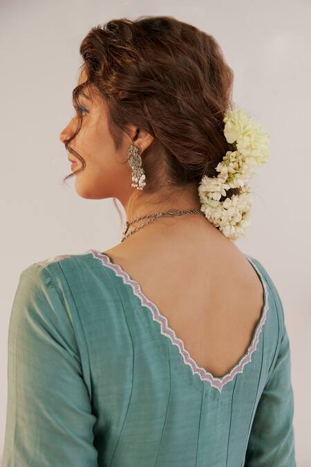 Buy_172 Threads_Blue Chanderi Embroidered Floral V Neck Anarkali Set_Online_at_Aza_Fashions