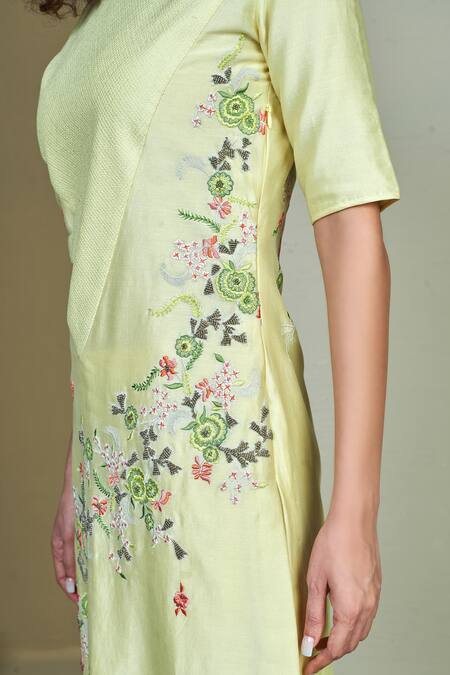 Yellow Chanderi Embroidery Round Neck Aranya Tunic
