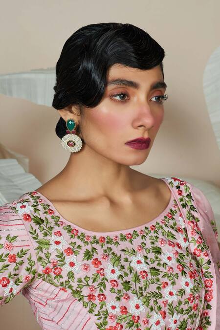 Pink Chanderi Embroidery Round Neck Luna Floral Bloom Lehenga Set