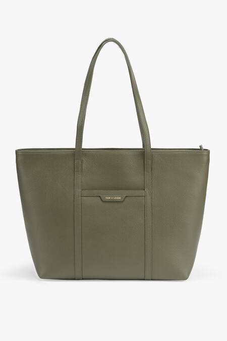 Green Textured 365 Days Leather Tote Bag