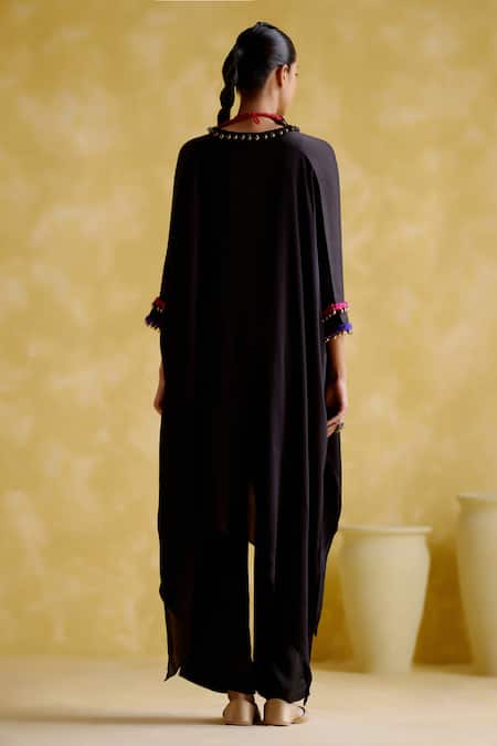 Black Modal Saturn Woven Bead V Neck Bhavishya Work Kaftan And Pant Set