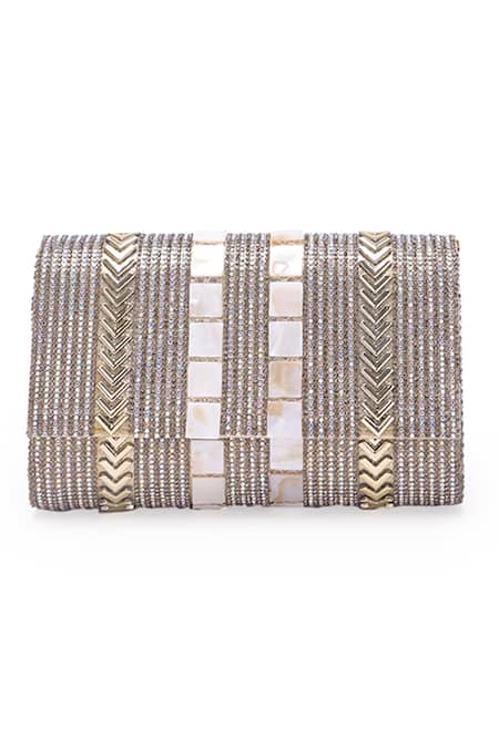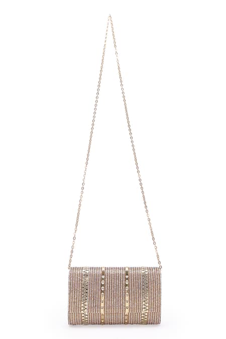 Intricate crystal and stone embroidery, Detachable sling chain for versatility, Premium polyester fabric