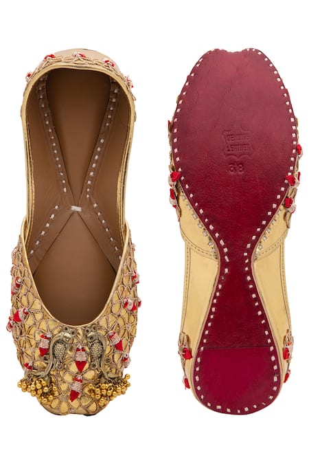 Gold Embellished Floral Ghunghroo Juttis