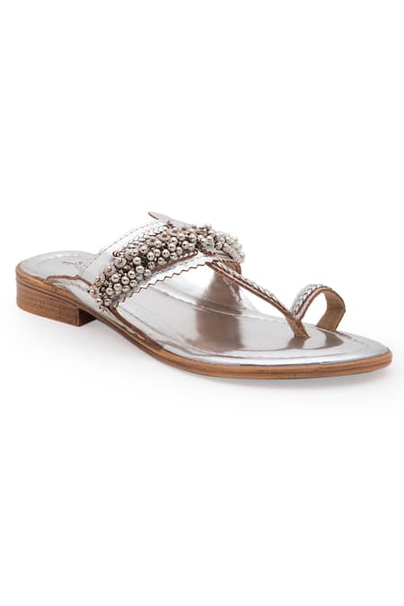 Silver Embellished Ghunghroo Kolhapuri Flats