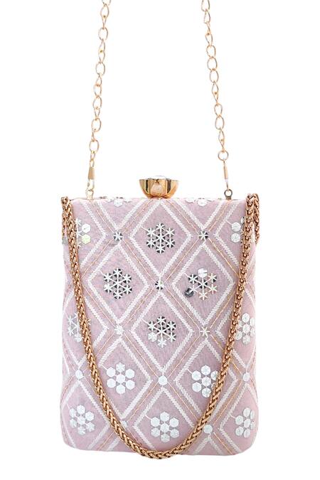 Pink Embroidery, Sequins Designer Fajr Dusty Clutch