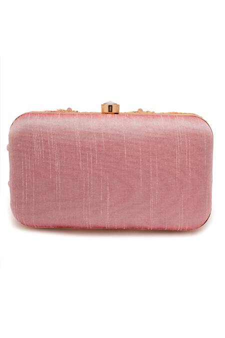 Pink clutch featuring sequins embroidery and a twist closure