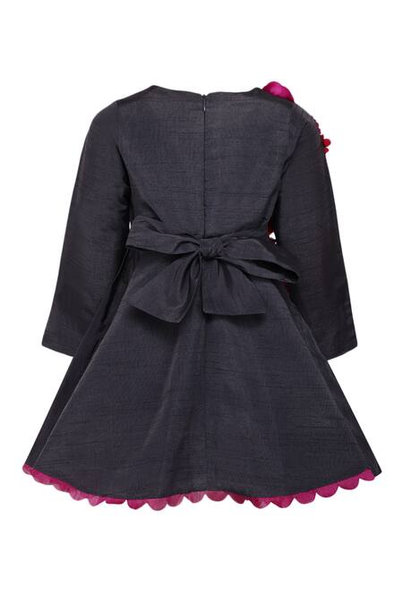 A Little Fable_Grey Taffeta Fabric Flowers 3d Floral Embroidered Dress _Online_at_Aza_Fashions