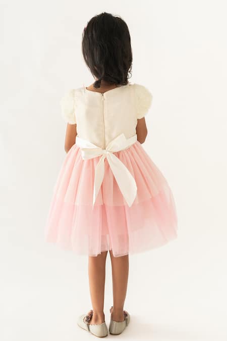 Pink Polyester, Cotton Embroidery, Sequins Daisy Sprinkle Ombre Tiered Dress