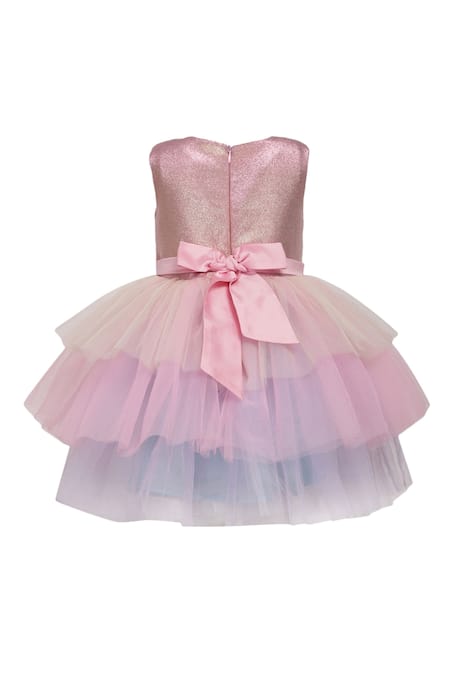 Pink Net, Lurex Sequins Shimmery Unicorn Tiered Dress