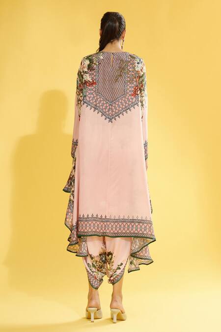 Peach Silk Floral Round Aafreen Printed Asymmetric Tunic