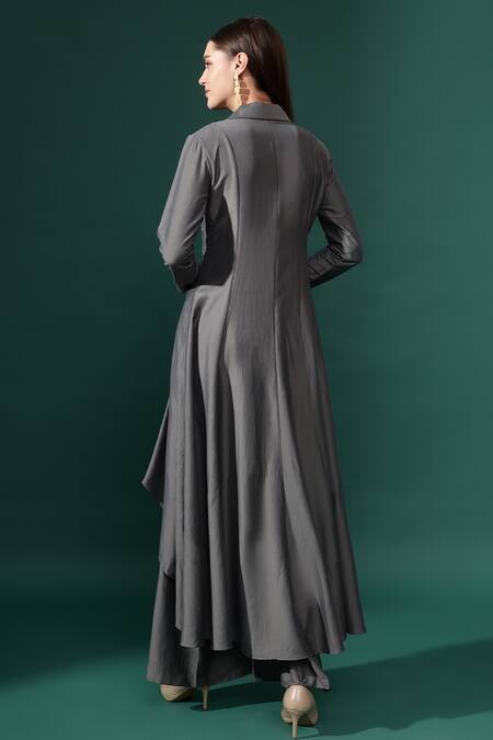 Buy_Aakaar_Grey Cotton, Silk Crystals Beaded Flora Applique Blazer Kurta With Flared Pant_Online_at_Aza_Fashions