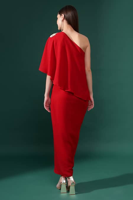 Buy_Aakaar_Red Modal Sequins One Shoulder Petunia Embellished Dress _Online_at_Aza_Fashions