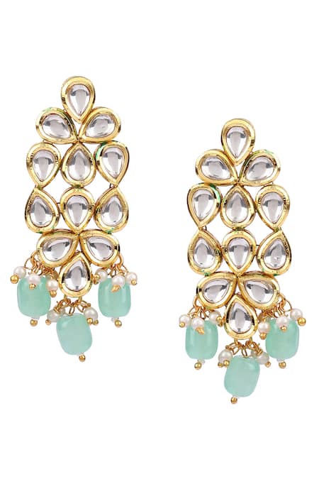 Kundan floral top with mint green drops, Adorned with pearls and beads, Gold plated finish