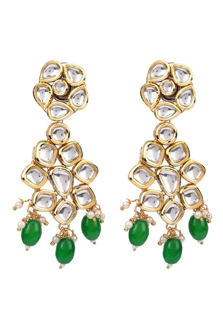 Kundan floral top design, Green bead drops, Push back clasp closure