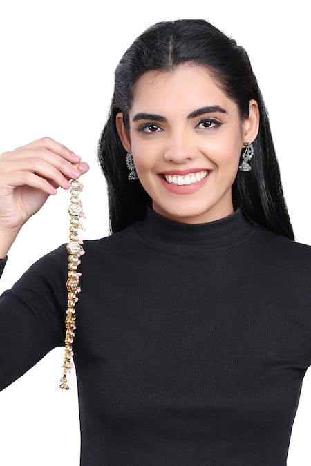 Buy_Aakarsha By Ajay_Pink Pearls, Beads Kundan And Embellished Pair Of Anklets_at_Aza_Fashions
