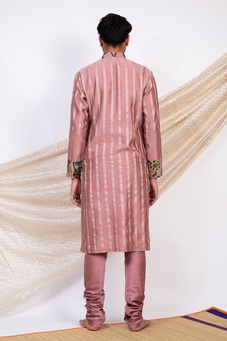 Pink Chanderi Silk Print Kalamkari Phool Bloom Striped Kurta With Churidar