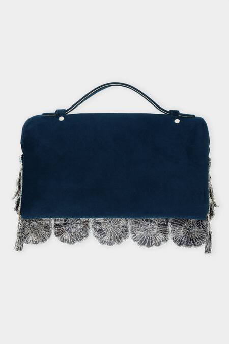 Buy_Aanchal Sayal_Blue Cutdana 3d Petal Flora Embroidered Pouch Bag_at_Aza_Fashions