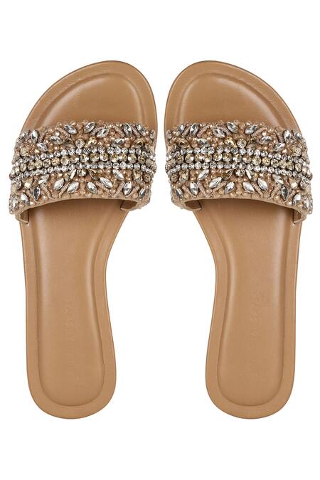 Buy_Aanchal Sayal_Gold Embellished Sliders_at_Aza_Fashions