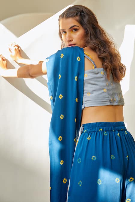 Multi Color Modal Bandhej Square Neck Aster Draped Pant Saree