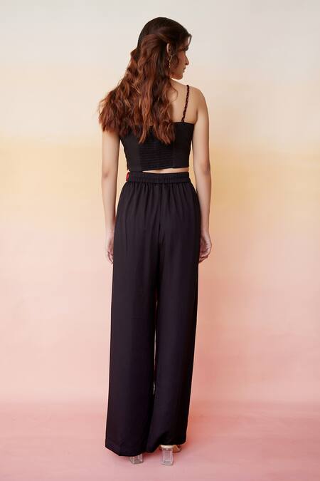 Red and black crop top with bandhej print, twist detail in front and contrast back. Comes with a co-ordinating pant.