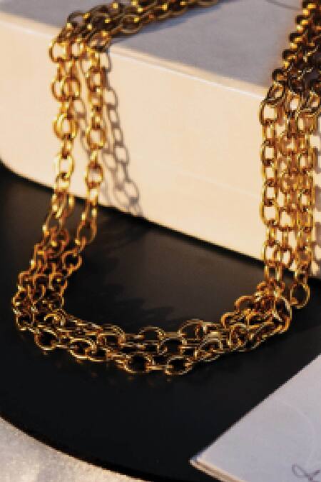 Buy_Aaree Accessories_Gold Plated Triple Layered Figaro Chain Necklace_at_Aza_Fashions
