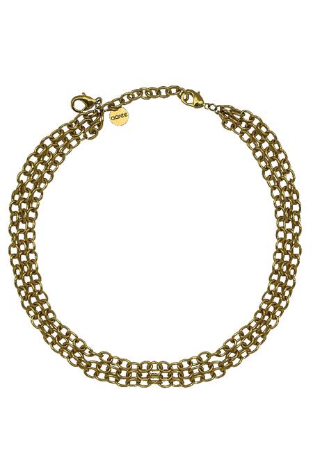 Shop_Aaree Accessories_Gold Plated Triple Layered Figaro Chain Necklace_at_Aza_Fashions