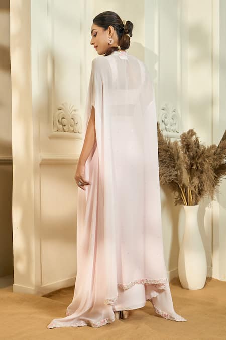 Peach Viscose, Modal Beads, Sequins Embroidered Border Cape And Draped Skirt Set