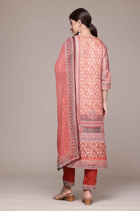Buy_Ritu Kumar, Ri.Ritu Kumar, aarke Ritu Kumar_Rust Cotton Embroidery Keyhole Neck Printed Kurta Set_at_Aza_Fashions
