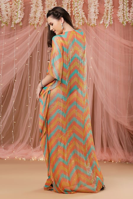 Multi Color Chiffon Chevron Print V Neck Kaftan