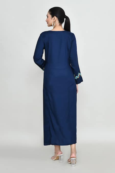 Buy_Abbaran_Blue Rayon Embroidery Round Neck Tunic