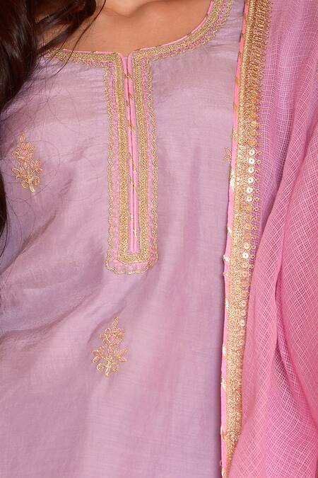 Buy_Abbaran_Purple Cotton, Silk Embroidery, Gota Patti Round Floral Dori Kurta Gharara Set _at_Aza_Fashions