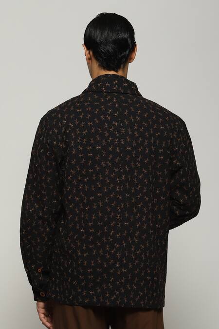 Black jacket featuring full sleeves and collar with all-over ants embroidery