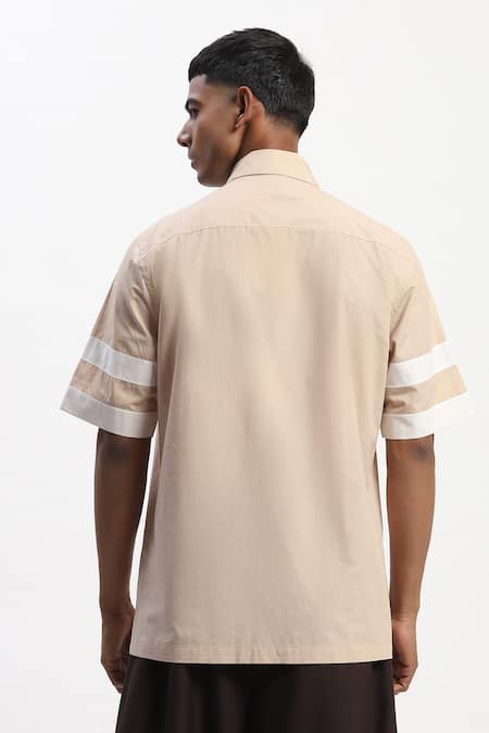 Beige patchwork shirt made from fine cotton poplin featuring contrast patchwork and applique