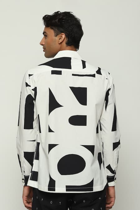 White Cotton Calligraphy Print Shirt
