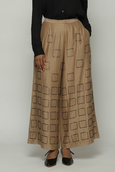 Biscuit palazzo in Chanderi fabric featuring scattered square embroidery with cutdana beads