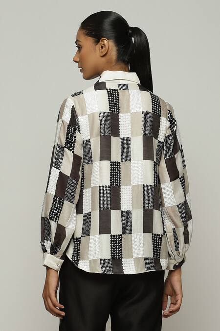 Ivory chanderi shirt featuring a checkered print with sequins embroidery